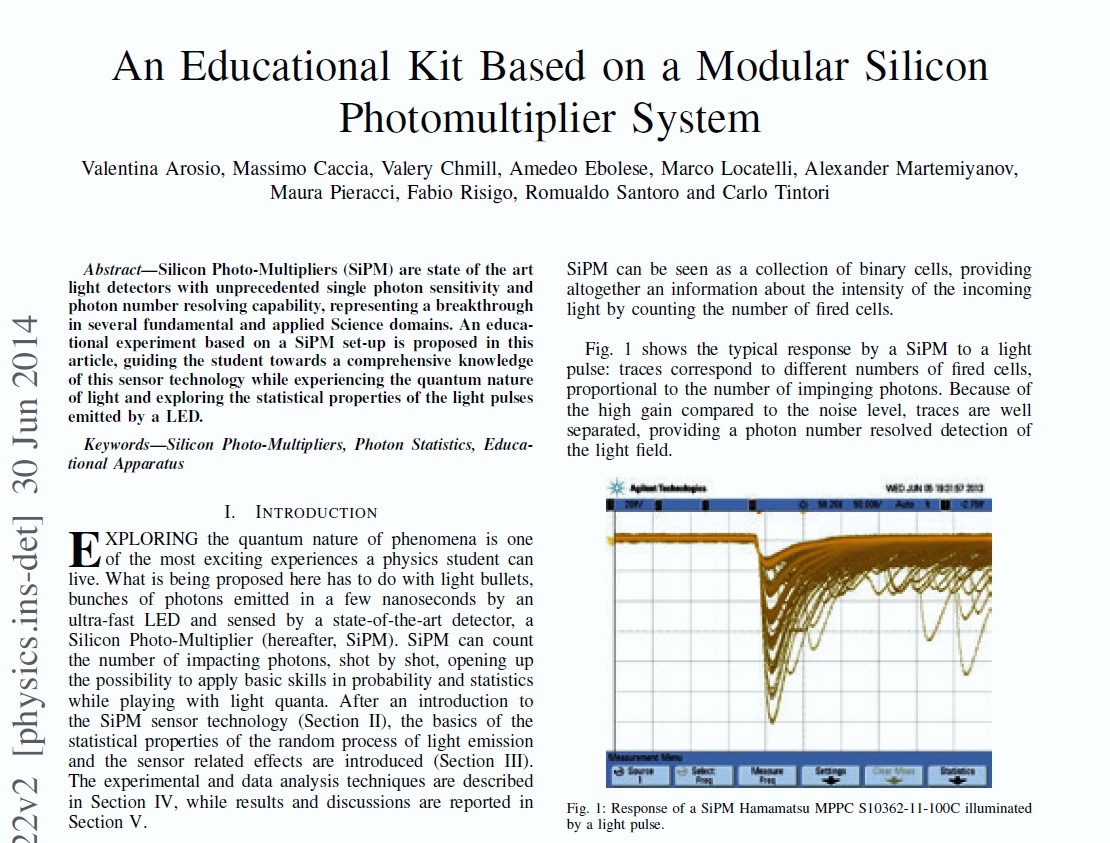 A series of experiments covering several applications has been carried out and are presented in this section through detailed Educational Notes. The collaboration with the University of Insubria allows to offer experiments based on Silicon Photo-Multiplier detectors for advanced laboratories using the latest instrumentation generation developed by CAEN for the major experiments Worldwide.