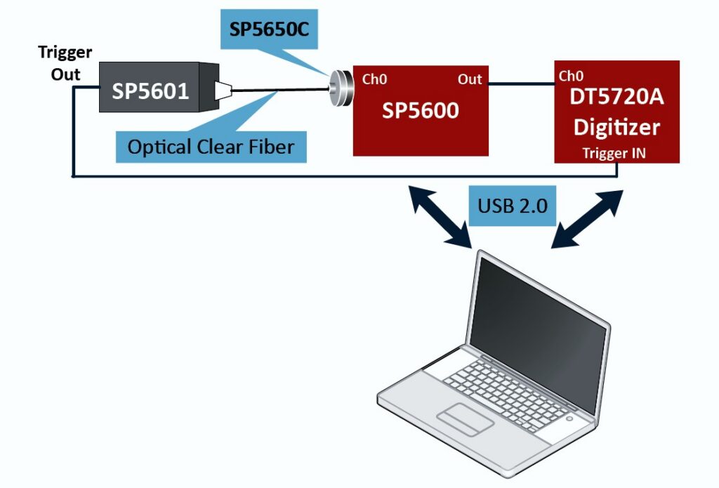 | Description | Power Supply and Amplification Unit | Desktop Digitizer 250 MS/s | LED Driver | Sensor Holder for SP5600 with SiPM |